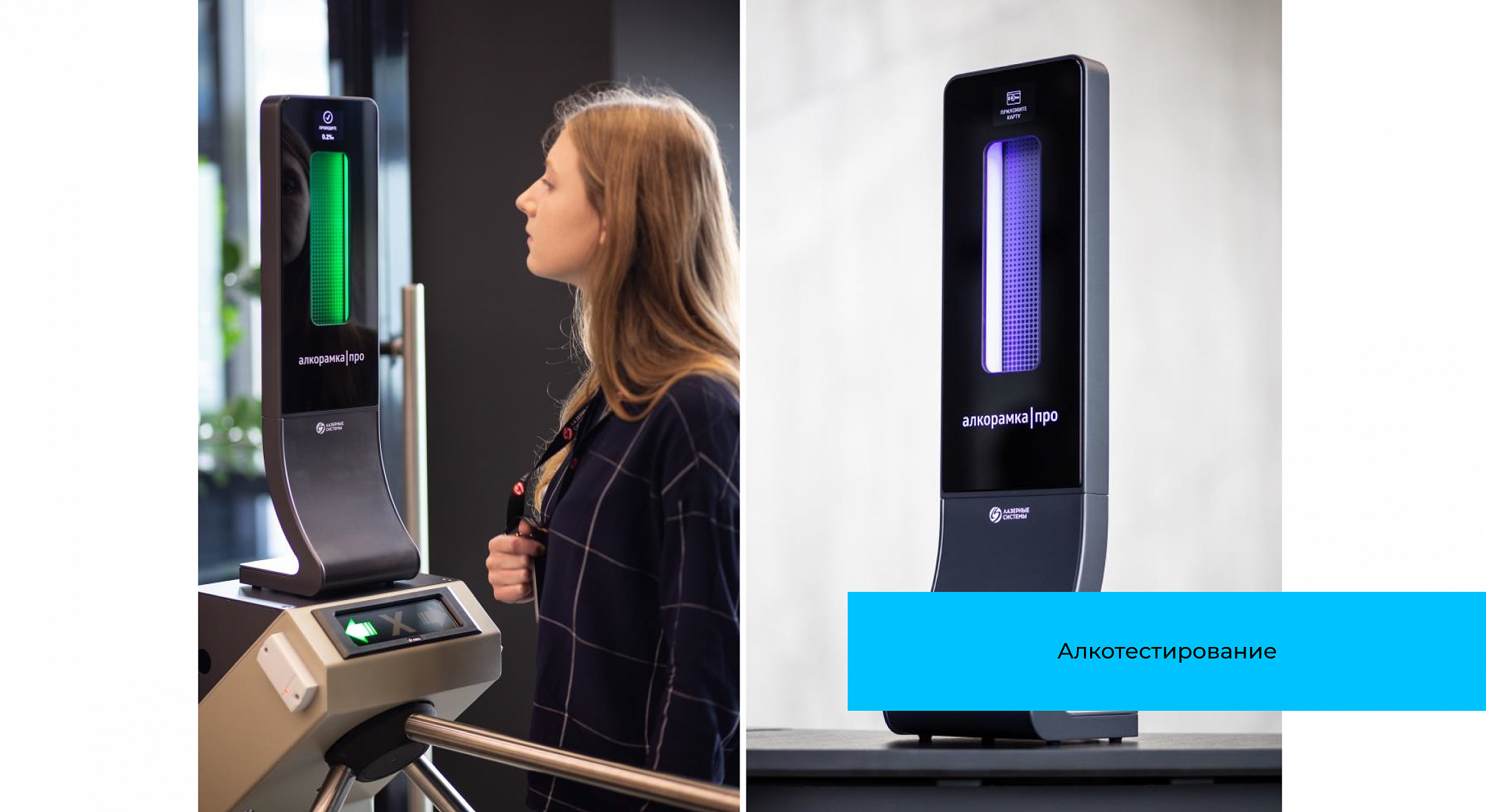 Решение размещается на контрольно-пропускных пунктах и интегрируется с существующей СКУД, чтобы блокировать доступ сотрудников организации и других посетителей, находящихся в состоянии алкогольного опьянения. Также возможна установка на транспортных средствах для контроля водителей.